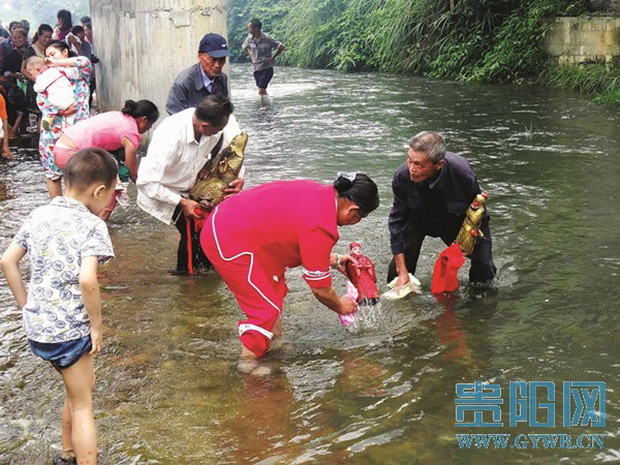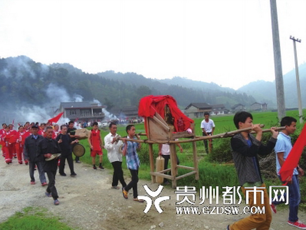 6月11日是农历的五月十四,这天,位于湘黔交界处的黎平县德顺乡张鲁村木洞寨举行一年一度的“抬关公洗澡”活动,吸引了上千群众前来看热闹。