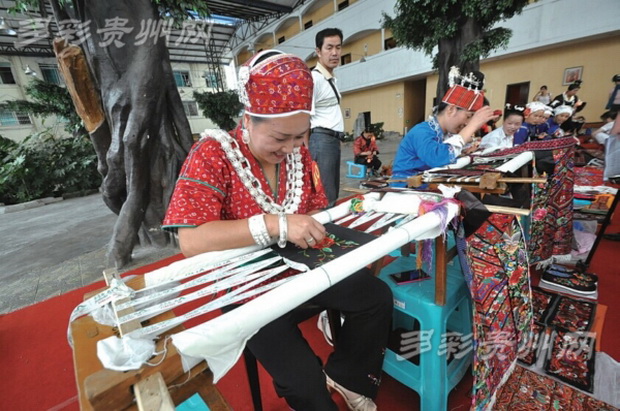 多彩贵州网讯 7月20日上午,在黔东南州第二届“百佳绣娘”评选活动上,来自黔东南州各县市的100名绣娘齐聚凯里,飞针走线,比拼刺绣技艺。参加比赛的100名绣娘,均是在各县市举办的“百佳绣娘”评选活动中胜出的“顶尖高手”。