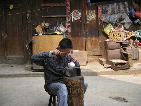 银匠小伙子和平1988年生,从小跟父亲打制银饰,高中毕业落榜,操起了父亲的旧业。
