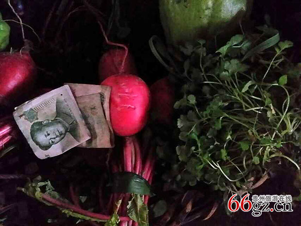 在贵州省剑河县久仰乡农贸市场,当地村民用一种独特的方式卖菜,那就是不守摊。每天上午,卖菜的人直接把菜一把把的捆好放在篮子里,就上山忙活去了;买菜者根据需要自觉付费,一元一把蔬菜,直接把钱放进菜篮子里。长时间来,不但没有取菜不给钱的人,而且买主放在篮子里的钱也从不被别人拿走。