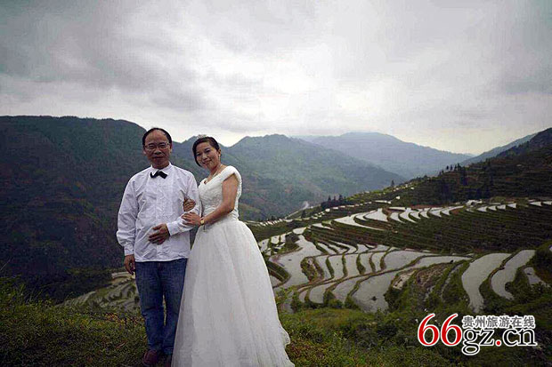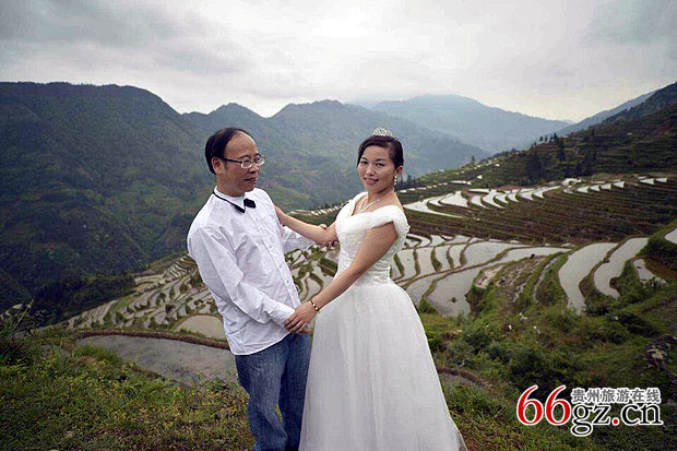 在加榜梯田拍摄婚纱照的深圳夫妇