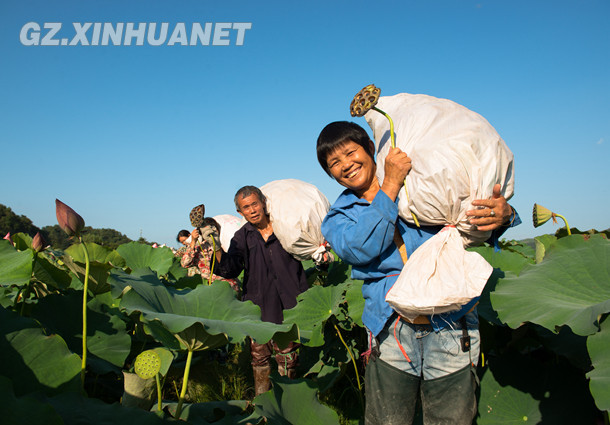 天柱:“千亩莲池”基地莲蓬开摘