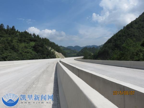 为实现2015年底通车,目前,该高速公路的各个工程路段日夜加班加点,有的对已完成的路进行铺设细砂油路,有的整理边沟盖着水泥板,有的扫尾架桥接通隧道等等工作。图为雷山段羊吾至连城河口的桥梁。