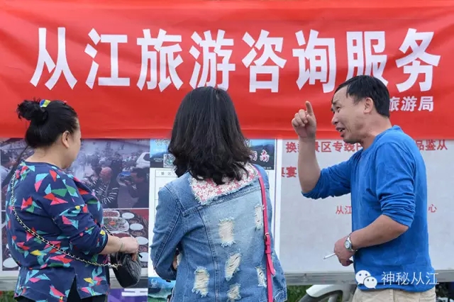 (五)旅游咨询为游客提供服务受好评。为方便游客出行,从江县旅游局会同县公安交警、沿途乡镇,分别在从江高铁站、高速公路出口、汽车站、游客集散中心(銮里文化风情园)、岜沙、小黄景区门口等6个交通节点设置旅游咨询服务台,最大程度为游客排忧解难。黄金周期间,共接受游客咨询服务两万多人次。
