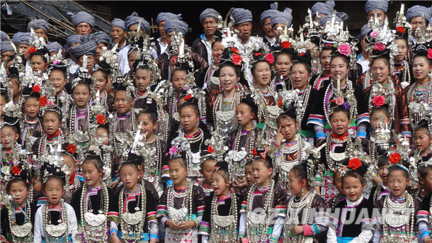 侗族大歌节上的“小黄九朵小金花”。(梁雨 摄)