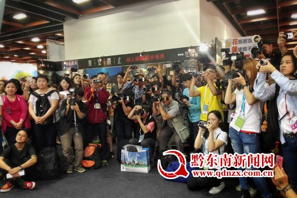 在贵州展馆,随着一曲悠扬动听的从江小黄侗族大歌拉开了贵州旅游推介活动的序幕。歌声引来了大量台湾同胞驻足观看,吸引了台湾中天电视台、《年代新闻》等十余家新闻媒体争相报道。