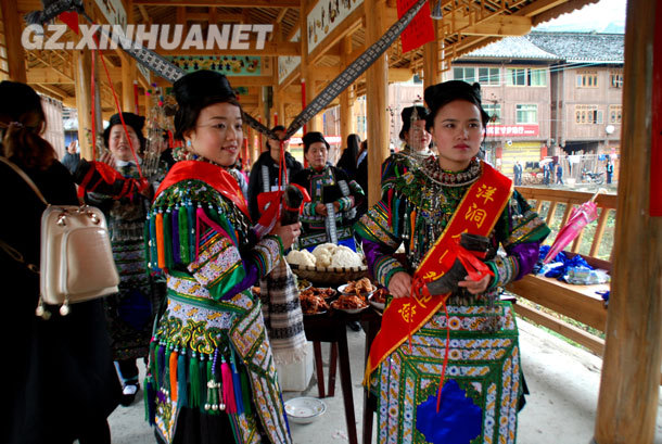 据洋洞侗寨的当地村民杨正本介绍,该侗寨祭祖节每年的农历十月二十六举办,从农历十月二十四开始祭祖,祭祖共三日。祭祖仪式首先由侗寨里三世同堂的两位老人绕着花桥走一圈,祈福平安,之后再由侗寨里的男女老少绕花桥走一圈,缅怀祖先。
