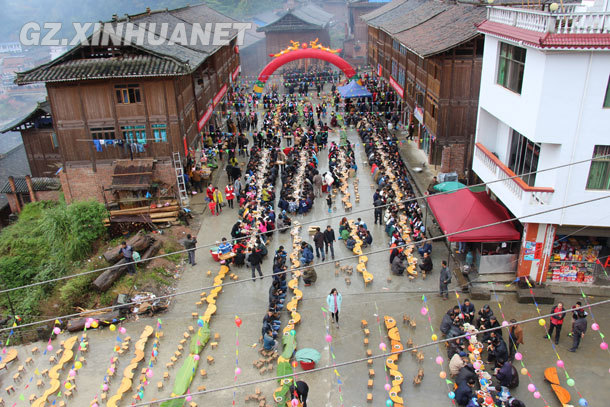 “今年的祭祖节,我们邀请了尚重镇24个村的侗寨同胞一起来洋洞和我们祭祀杨氏祖先,我们为此专门安排每个房族的每家每户各做一道侗家特色菜,摆了五百多桌的长桌宴来欢迎八方宾客。我们的祭祖节还吸引了慕名而来的德国八名游客”洋洞村支书杨茂学说。