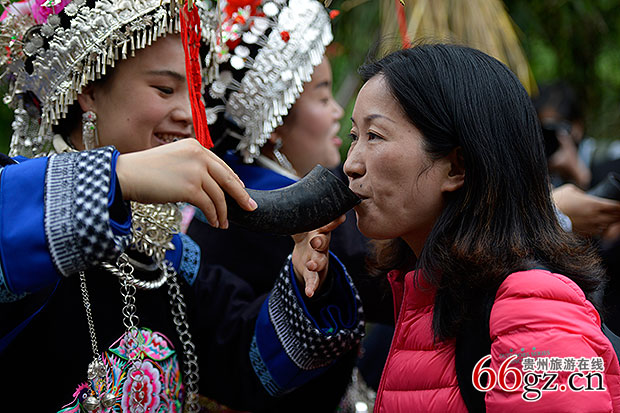 三月三当天,平日安静的村庄热闹非凡,一批慕名而来的客人,走进古朴、带有浓浓苗族特色的新民新合村。感受了苗家人热情的迎宾牛角酒。苗族同胞穿着节日盛装来到村里的舞台前观看三月三开幕活动。具有剑河苗族民族特色的歌舞“仰阿莎”等精彩的节目,以欢快的舞姿,甜美的歌声,和着喜庆的音乐,引发现场一阵又一阵的掌声。