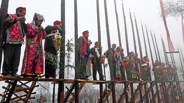 苗族信仰万物有灵,崇拜自然,祀奉祖先。在从江西部多处苗寨,都会设一个“寨老”祭坛,每当大年三十,全寨人都会到此祭拜,祈求平安。拍摄者抓拍瞬间很到位,虽然照片画质一般,但民俗活动的拍摄,内容是主要的,画面生动准确的表现了祭祀的场面。