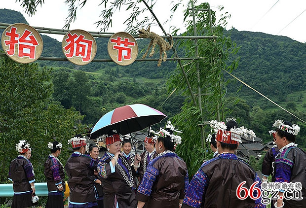 “抬狗节”是流传于贵州省剑河县革东镇交榜村独有的苗族民俗,旨在感谢狗为他们的祖辈找到生命的水源,学会感恩,提倡万物平等。