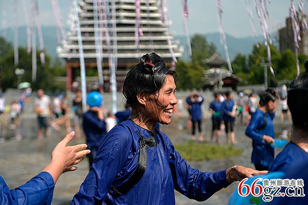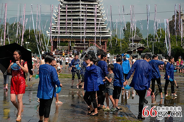 扁水狂欢节当天举行了侗歌对唱,随后在三宝侗寨鼓楼下、大榕树前,激情扁水。
