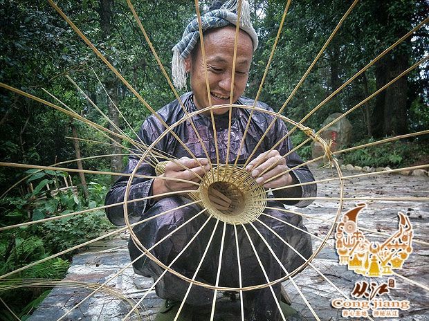 岜沙汉子不但人人是枪手,而且也有着一双巧手,编起瓢篓来也是相当老练的。只见他们熟练地用一条条细细的竹篾编制瓢篓,原材料都是亲自到山上挑选砍伐自家地里的竹子,然后拉回来加工,这样编织出来的瓢篓经久耐用,深受喜爱。