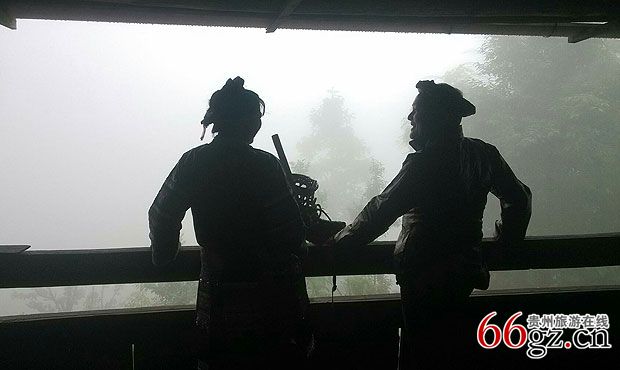 高华村的清晨是安宁清新的,被雾气笼绕的吊脚楼里,一对男女像是在欣赏远方景色,又像是在互相寒暄道情谊。俩人的轮廓若隐若现,让人遐想。