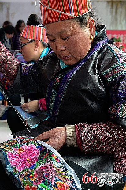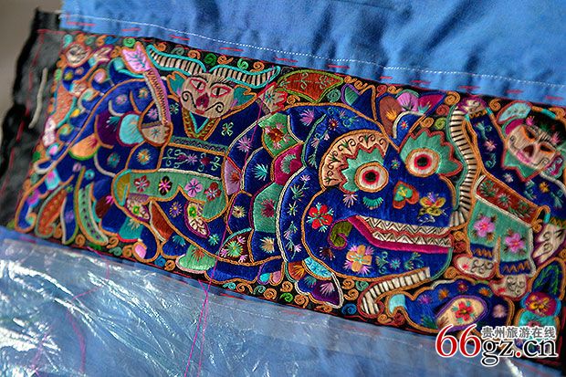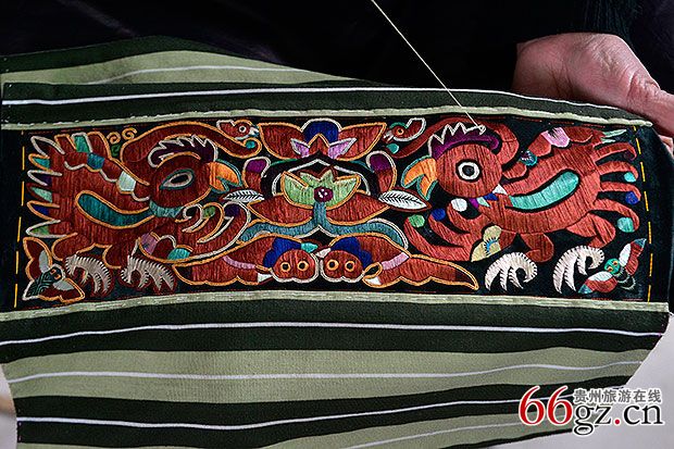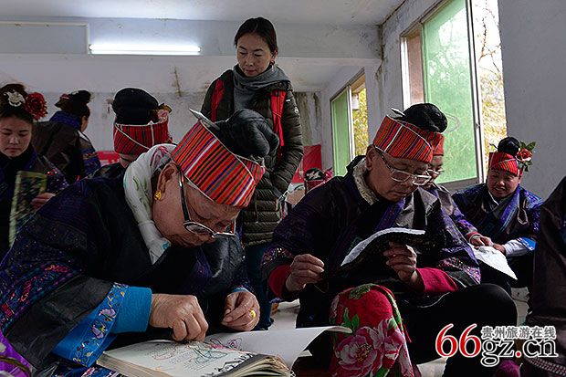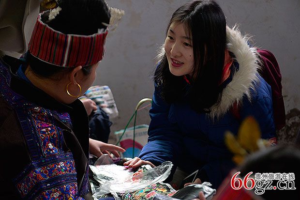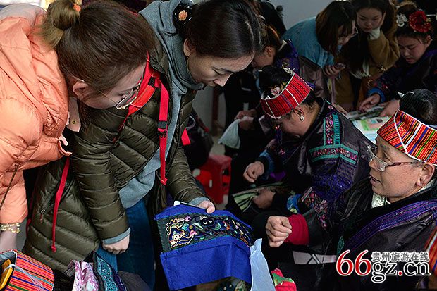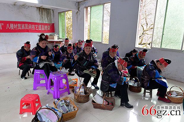 八梗村,以刺绣精美被熟知。当地苗族妇女擅长破线绣。其苗衣上的刺绣为破线绣和叠绣的组合,因技法难度高、成品精美,村里组建了苗族传统手工刺绣专业合作社以及文化传承工坊。师生在村里与绣娘们交流,绣娘一边解答,一边展示绣片,场面融洽。