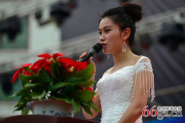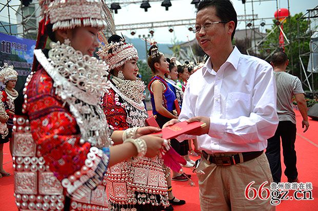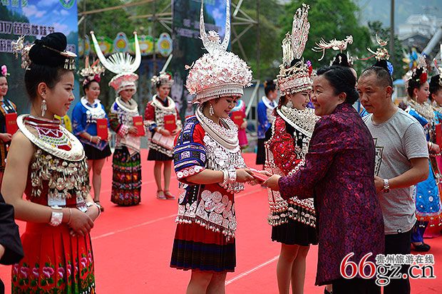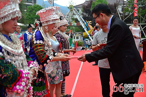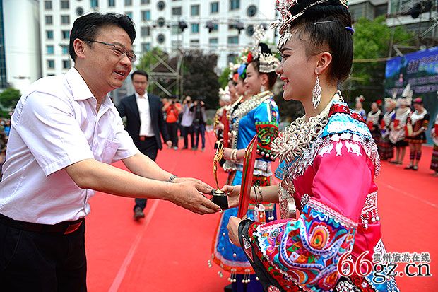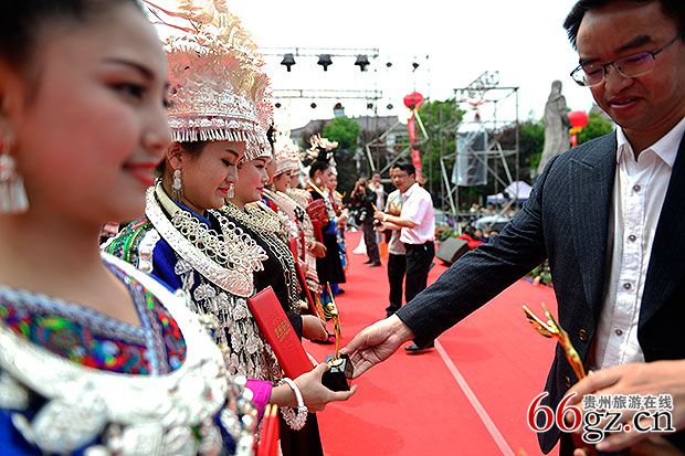 台江县人民政府副县长曾武松为获奖佳丽颁奖