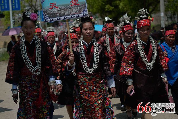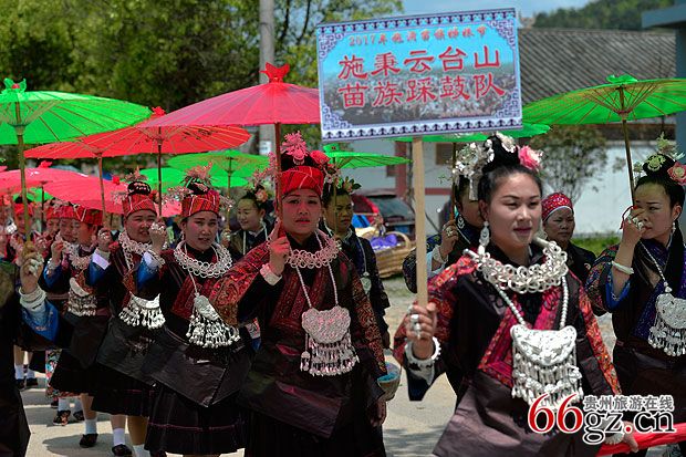 贵州旅游在线讯 4月12日,中国·台江“2017苗族姊妹节”第三天,台江县施洞镇上千名苗族同胞身着节日盛装进行游演活动,展示当地独具苗族特色的服饰和银饰魅力。随后共聚偏寨姊妹广场,参加千人盛装踩鼓活动。国内外游客齐聚一堂,共睹姊妹节的风采。