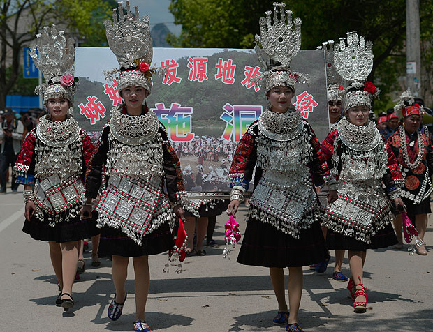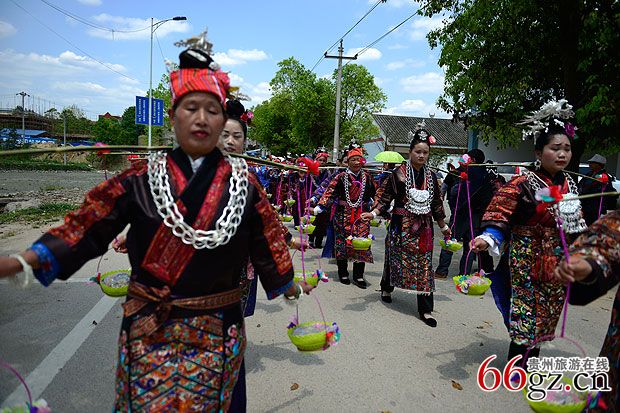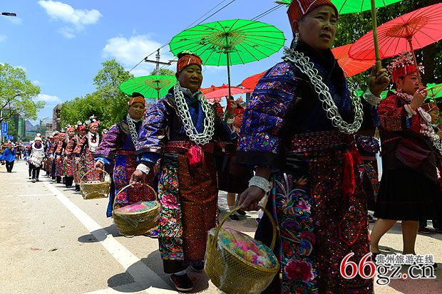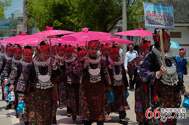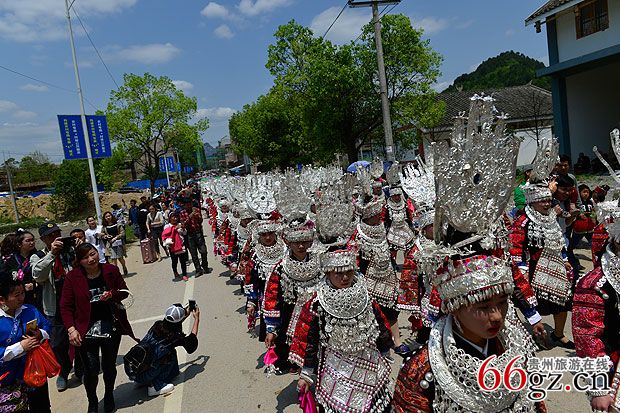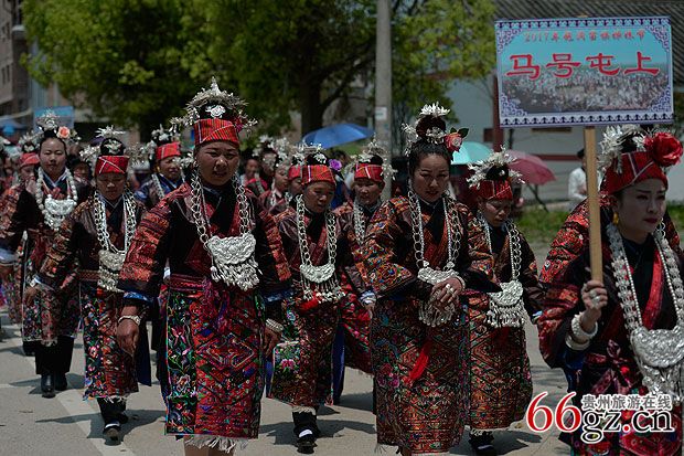 施洞镇上千名苗族同胞身着节日盛装进行游演活动↓↓↓