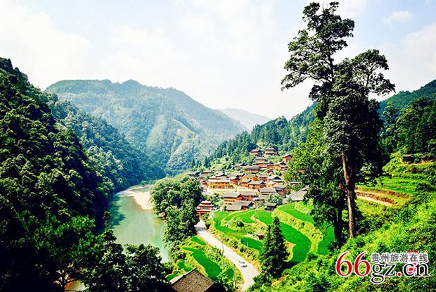 贵州省剑河县南哨镇反召村位于县城东南,距县城69公里,地处天然氧吧、百里原始阔叶林区中心地带,汉、苗、侗3族杂居,是县级新农村建设试点村,寨内民风淳朴,寨下为巫密河,可沿上游林溪漂流入境。由新县城经久丢村驱车直入,一路狭谷幽邃,古木森森,崖树倒挂,清泉奔流——崖壁瀑、林中溪、河中潭、瀑流交融,汇聚成湖,谷中鸟语花香,山花竞放,香溢山谷……,及至反召码头,俯瞰鱼儿在清澈的水底游弋,更如临瑶池仙境,令人超凡脱俗。2013年入选第二批中国传统村落名录。