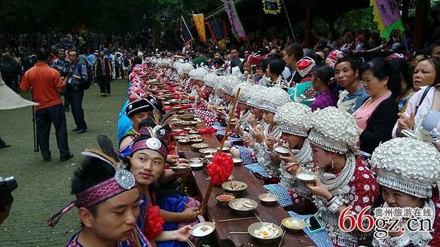 贵州旅游在线讯 2017年5月3日,又是一年春夏替更时,又是一度“四月八”祭牛节,每年的农历“四月八”飞云崖这里都将会举行一次重大民族节日集会(苗语:弄嘎讲略)。“略弄噶讲”,意为“喂牛吃稀饭”。