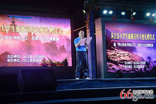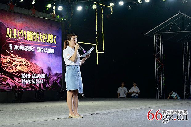 为全方位做好旅游宣传工作,打造国内外知名民族文化旅游目的地,今年2月份,从江县旅游局面向全国各地的从江籍大学生发起了以“我骄傲,我为家乡旅游代言”为主题的从江大学生旅游宣传大使礼聘活动。目前有近700名从江籍大学生加入到我县旅游宣传队伍中来。为鼓励大学生以代言人的身份宣传家乡、推介家乡,分别给唐永蓉等15名大学生代表颁发《黔东南州旅游宣传使者》聘书。为感谢杨一芳和罗希彦两位女士为从江旅游宣传推广作出的贡献,并通过他们进一步加大从江旅游品牌知名度和传播面的提升,特聘请她俩为“从江旅游形象大使”,并颁发聘书。