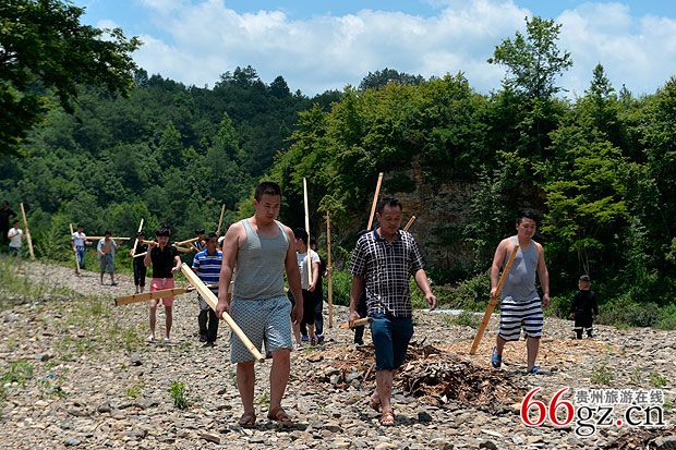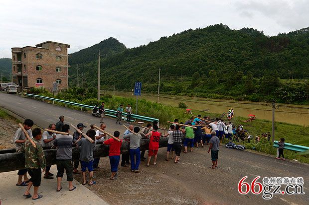 把龙舟抬到清水江边
