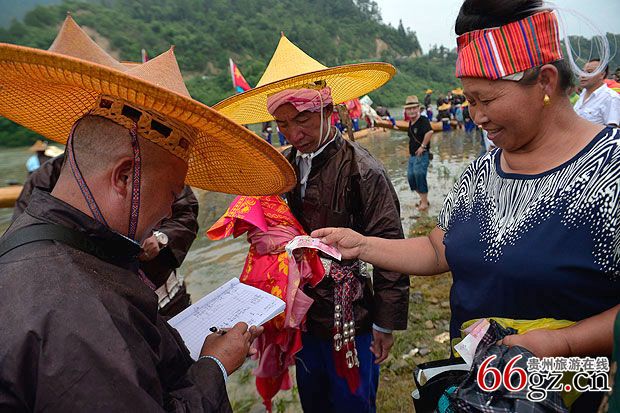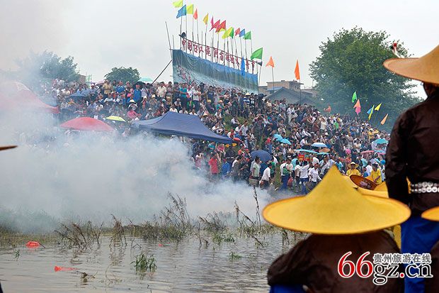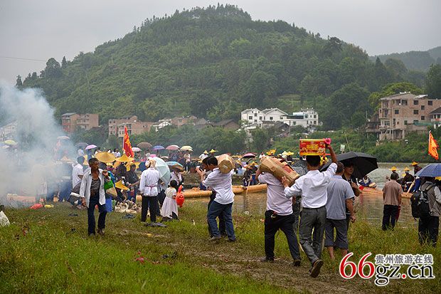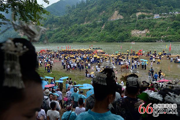 活动期间,虽然受前段时间雨季的影响,清水江有些浑浊,但毫不影响人们举办龙舟赛事的热情。比赛当天,各乡、村寨独木龙舟从各自村落下水后集中塘龙村河段,各龙舟在河中来回竞渡风情展示,让家人亲友朝拜。节日当天小雨纷纷,河坝上依旧人山人海。火铳、鞭炮声响彻云霄,各寨龙舟的三亲六戚纷纷前来接龙,在龙头上挂鸭鹅,有的送肥猪、有的还送黄牛。同时,给龙舟龙主、桡手敬酒,表示祝福,祈求平安。一整天时间下来,施洞码头人头攒动,热闹非凡。