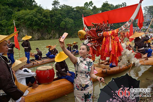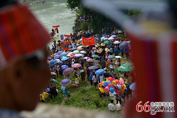 随着龙舟的陆续到达,河坝上开始变得热闹。