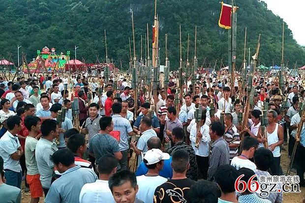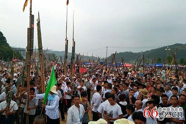 链接:洛香芦笙节是为了纪念发明水车的侗族工匠“公闷”和庆贺丰收举办的一个盛大节日,节日当天要举行祭祀仪式,男女老少皆身着民族盛装,在寨老的引领下,伴着锣鼓声、芦笙声、鞭炮声到各寨的萨岁“社堂”喝上平安茶,并围绕社坛转圈以示祭奠,祭奠完成即开始芦笙比赛。比赛准备开始,婀娜多姿的侗族姑娘们身着民族盛装担着一桶桶甜酒迈着轻盈的步伐走来,用浓香的甜酒为参赛的芦笙队员加油打气,给来宾、游客献上侗家人的热情。随着三声铁炮响起,芦笙比赛正式开始,赛场上,比赛队伍人人均使出了浑身力气,为本村芦笙队的荣誉而战,实力比拼下一支支芦笙队被淘汰,随着淘汰晋级,现场观众一次次的欢呼声把比赛推向了高潮。