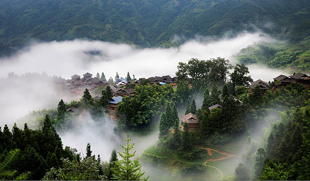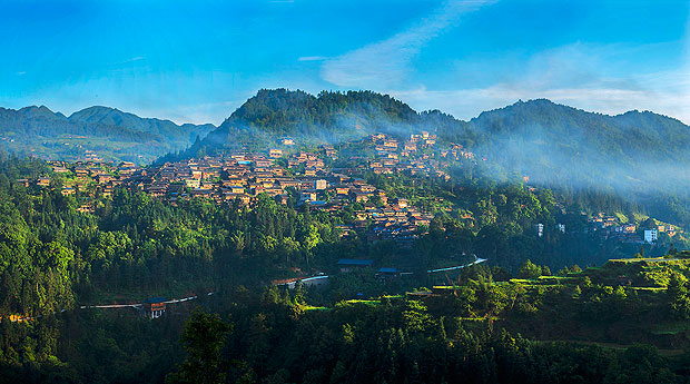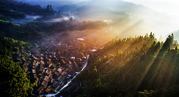 《苗寨晨曦》金蛇狂舞