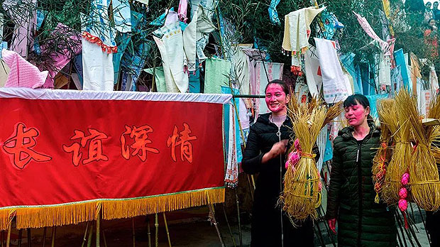 据了解,两寨之间吃相思,须在半年前互相通气,以便准备更好的招待客人。当吃相思活动结束时,客人要返程,主人要送别。主寨家家户户用糯米草包糯米饭,煮红蛋赠送客人,集体赠送的有锦旗、彩匾、活羊、活猪、活牛等;姑娘赠送的有面巾、手帕、鞋垫、绣花带等。这些纪念品都挂在竹竿上让路人欣赏。送羊的表达主人一般情意,送牛的表达主人情意深厚,总之,送这些带尾巴的牲畜,意味着此次吃相思尚未完结,还有尾巴,预示下次(来年或隔年)将要回访,若送不带尾巴之物,则说明已全部结束。当客人受礼后,则以红包回报致谢。当主人放三铁响炮欢送客人出寨门后,双方男女青年还用红、绿等有色之膏物互相涂抹对方的脸,表示此次吃相思已找到了意中人,用此作标记,以后要到家来求亲。