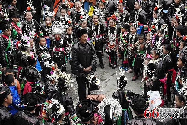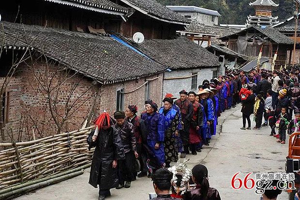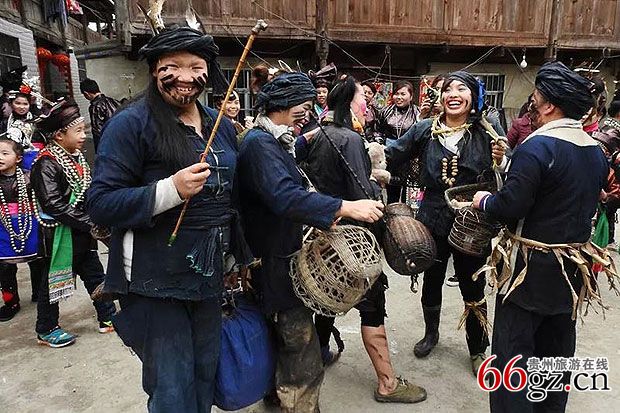 2月24日,正月初八,贵州省从江县往洞镇高传侗寨举行盛大的祭萨迎新春活动,祈求风调雨顺、幸福安康,喜迎狗年新春的到来,吸引众多游客,侗寨里处处洋溢着浓浓的年味。据介绍:每年正月初八这天,高传侗寨都自发组织到祖萨堂举行盛大的祭萨活动,寨老队身着明清时期袍服、花脸队打扮成小丑和男女青年身着民族盛装、敲锣打鼓、吹芦笙,聚齐到高传社堂举行祭萨仪式。杀猪、请萨、焚香、献茶、绕寨、鸣铁炮、吹芦笙。(摄影:杨通荣)