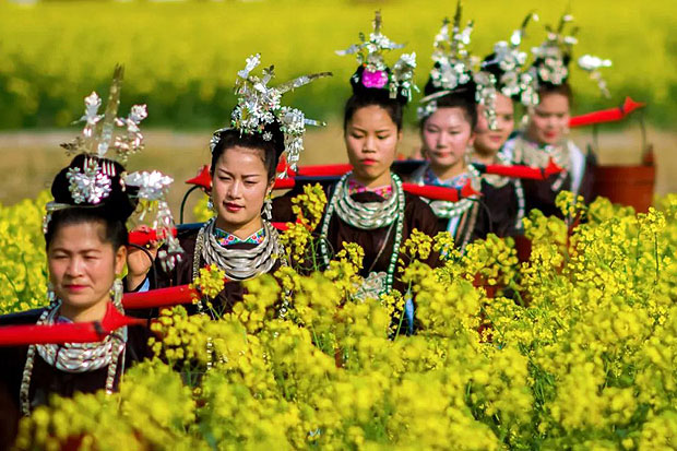进入阳春三月,阳光明媚,春暖花开,又到了一年最美踏春赏花季。贵州省从江县洛香、贯洞、高增等乡镇的数万亩油菜花竞相开放。特别是洛香镇上皮林村的2千余亩的连片油菜花开得正艳,形成一片金色的世界、花的海洋,蝶舞蜂忙,花香四溢,吸引了当地群众和省内外游客前来踏青赏花、拍照留念。(图片:周志军)