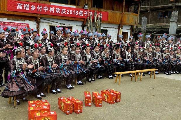 付中村地处该县高增乡西部,是“七星侗寨”旅游线上唯一一个苗族村寨。据了解,该村的“燕子节”历史悠久,关于“燕子节”的来历还流传着一个美丽的民间传说。相传很久以前,领袜、加当、付中等地方没有杉树,大家居住的都是草棚、山洞等,条件非常简陋。燕子看了非常同情,它们到处发动帮助人们寻找树种,当发现远在海洋那边有一种树(杉树),这种树不生虫,而且韧性较好。于是燕子漂洋过海帮助人们把树种找来,种到了一定年限树木长大后人们就可以砍来建造房子。为了感谢燕子给人们带来树种,这里的先辈们就规定,房子建好后屋檐要无偿送给燕子搭窝。同时规定,每年农历二月初一或初二,天气变暖,燕子飞回来之时要举行隆重的庆祝活动,也就是今天的“燕子节”。