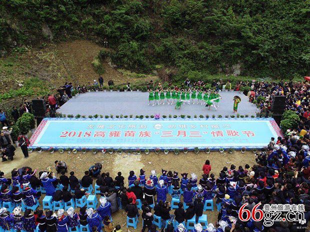 贵州旅游在线讯 4月14日,贵州省黔东南州剑河县观么镇新民新合村举办“2018高雍苗族三月三情歌节”活动,情歌节活动从新民新合村自然寨巫烧村隆重的拦门迎宾仪式开始。