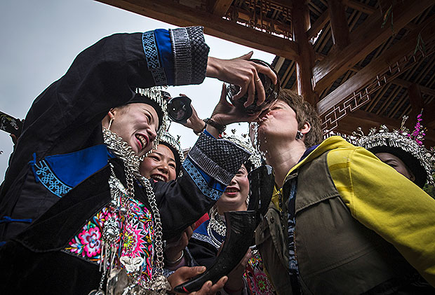 《苗家美酒敬外宾》 作者:李全华(湖南)