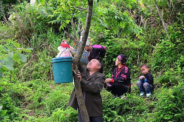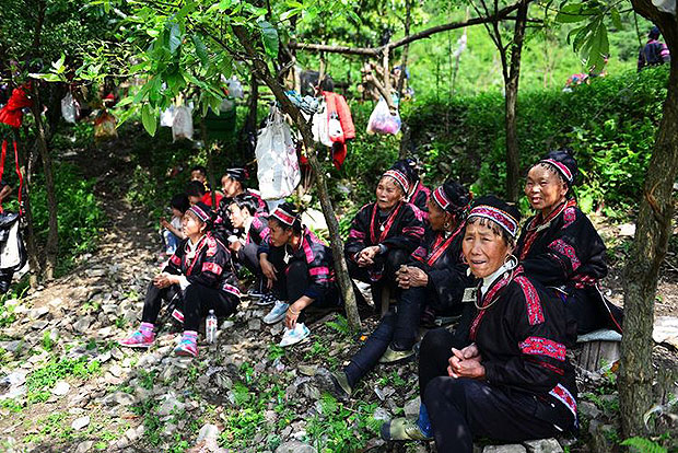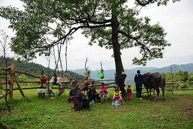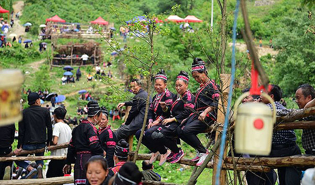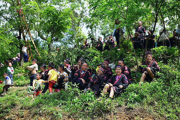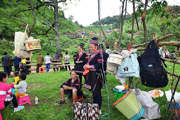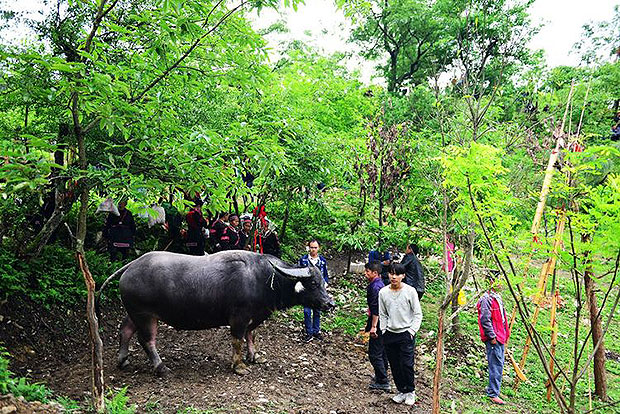 活动当天,附近的相邻村寨村民男女老少和各大家族牵着鼓牛,自备酒肉饭菜自行陆续到巫挖集中参与活动。
