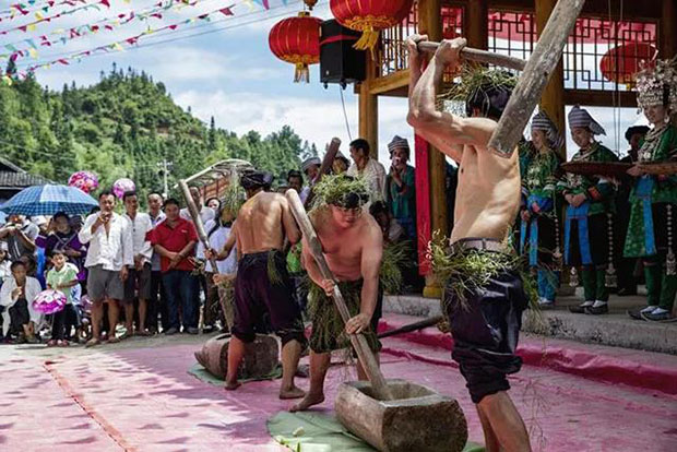 整个活动持续了4个多小时,活动结束后,便开始举行具有民族特色的长桌宴,让你尽享民族特色美食,俺鱼、牛瘪、红肉、白水煮的串串肥肉,喝当地最好的土米酒。酒桌上,如果你稍不留神,姑娘、罗汉、妇女们会提起酒壶拿起牛角杯,来到你身边,扭住你,给你敬酒,喂你大块肥肉或者俺鱼。我不会喝酒,也怕罚酒,因此,抓紧时间匆匆吃了碗饭,拿起相机去抓拍那些激动人心的场面。