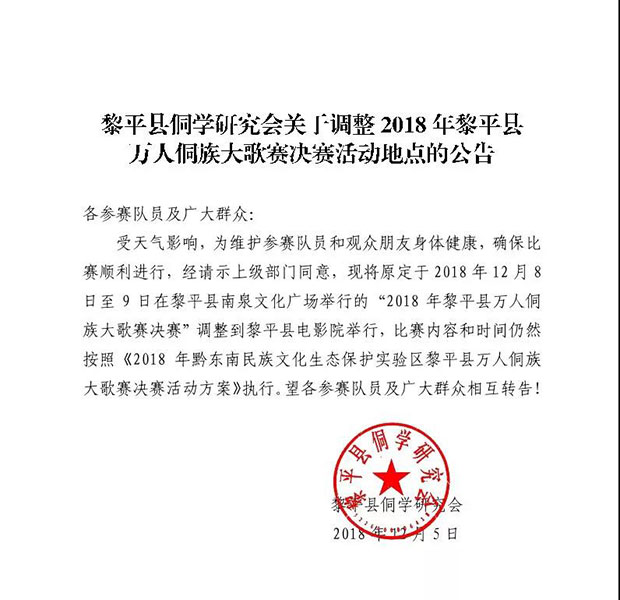 万人侗族大歌决赛地点改为