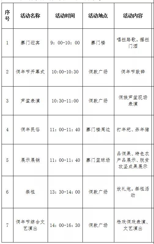 在一场场侗族文化的盛宴下,我期待与您相遇佳所侗寨“共庆欢乐侗年”。(12月9日)佳所侗寨侗年主题活动安排表如下: