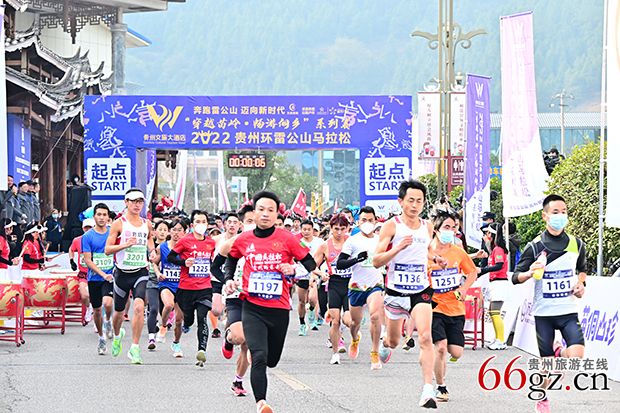 12月24日,“穿越苗岭·畅游侗乡”系列赛2022贵州环雷公山马拉松(简称马拉松赛)在凯里苗侗风情园举行,赛事设置马拉松(42.195公里)半程马拉松(21.0975公里)、健康跑(5.5公里)3个项目,吸引了千余名马拉松爱好者,包括杨花、郑文荣、张廷等国内马拉松名将,奔跑在清水江畔,相聚雷公山下,穿越苗岭、畅游侗乡,感受锦绣黔东南的无限魅力。
