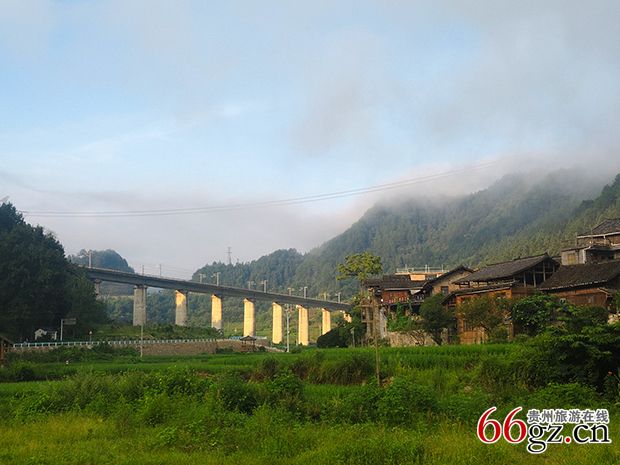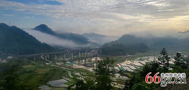 雾锁青山,也锁不住梯田的层层绿浪。清晨的田埂上,露珠沿着稻叶滚落,砸进水面,荡开一圈圈比高铁还快的涟漪。远处,苗岭主峰只剩一抹黛色剪影,像被云雾轻轻咬缺的月亮;近处,长滩河绕寨而过,水车吱呀,把古老的山歌翻唱成新的节拍。