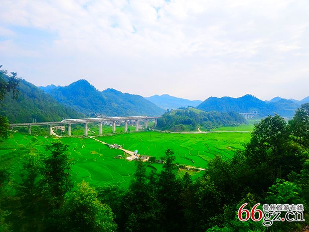 顺着山势蜿蜒的,是贵广高铁的银色弧线。列车穿过隧道,一声悠长的笛音把云雾撕开一条缝,像给长滩村递来山外的问候。车门一开,苗家阿妹的银铃先声夺人,山风裹着稻花香涌进车厢——高铁把“远方”缩短到二十分钟,却把苗寨的山水延伸成无尽的景深。