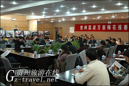 州、县领导向新闻媒体和旅行社介绍梅花节情况