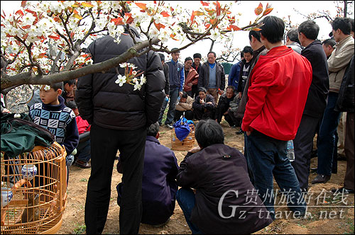 在“金谷春雪”梨花丛中举行斗鸟比赛