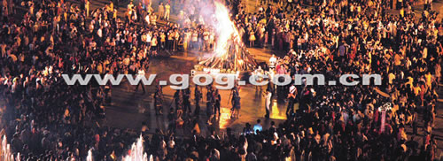 6月27日晚上,荔波县近2万名各族群众在樟江园广场燃放烟花、点燃篝火、跳起民族歌舞庆祝“申遗”成功。