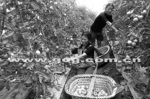 6月29日,独山县基长镇西红柿喜获丰收,广西、广东等地客商纷纷前来收购。近年独山县大力发展外向型特色蔬菜产业,通过科技示范园区的带动作用,培育以西红柿为主的优质蔬菜,成功打开了市场大门。