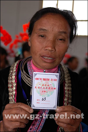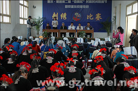 2007年9月7日贵州省惠水县摆榜乡举办第二届 “耍嘎杖”民族民间刺绣节。此次全乡共有381名苗族、布依族、汉族选手参赛,根据选手情况,设置平绣(贴花绣)、挑花绣、打子绣、马尾绣、十字绣等组别进行。以现场刺绣的方式参加比赛,8日将决出一、二、三等奖。