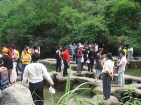 荔波县由县委、县政府领导亲自带队,宣传、新闻、旅游、工商、公安、交通、物价、卫生、质监、食品和药品监督等部门组织力量积极参与,在“十·一”旅游黄金周、旅客高峰期到来之前,联合查处县内特别是景区内的“黑社”、“黑店”、“黑车”、“黑导”等无证经营行为,坚决打击惩治私拿回扣、索要小费、强迫购物、虚假旅游广告和旅游购物欺诈等损害旅游者权益的不正当行为,切实抓好旅游的投诉工作,治理旅游客运市场,规范周边和短线旅游市场,净化小七孔、大七孔、小春河、茂兰自然保护区及布依、水、苗、瑶等民族村寨的环境卫生和接待秩序。