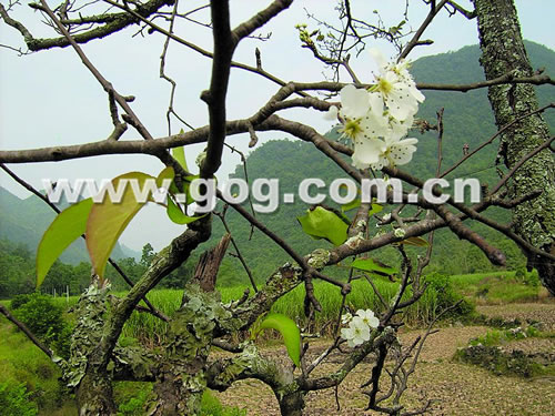 昨日,记者在贵州茂兰保护区内看到:有一棵古老的梨树上的叶子全部落光了,并挂有部分成熟待摘的梨子,可是,稀奇的是又开满白花。
